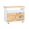 Wózek ma wiele opcji przechowywania dla wszystkich potrzeb kuchennych: 2 szklane drzwi i 2 szuflady. Z boku znajduje się uchwyt na ręcznik.