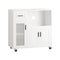 Wózek ma wiele opcji przechowywania dla wszystkich potrzeb kuchennych: 2 szklane drzwi i 2 szuflady. Z boku znajduje się uchwyt na ręcznik.