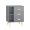 Szafka nocna ma 1 otwartą komorę i 1 drzwi z uchwytami, zapewniając wygodę i prywatność.
