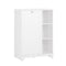Trzy szuflady i otwarta komora oferują mnóstwo miejsca na przedmioty codziennego użytku w łazience. Półki za drzwiami można regulować na wysokość, aby pomieścić przedmioty o różnej wysokości.