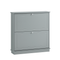 Ta ławka na buty ma 2 szuflady i duże drzwi.