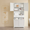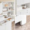 [Otwarta półka środkowa i zamknięta przestrzeń do przechowywania z drzwiami i półką]: środkowa otwarta półka zapewnia szybki dostęp do często używanych przedmiotów, takich jak mydło, papier toaletowy lub dekoracja. Za górnymi drzwiami znajduje się regulowana półka, którą można elastycznie dopasować do różnych rozmiarów produktów – od zapasów po środki czyszczące