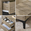 [NOWOCZESNY I CIEPŁY] Czyste linie o imitacji drewna z delikatnie zaokrąglonymi frontami szuflad – pasują do stylu nowoczesnego, skandynawskiego lub industrialnego.