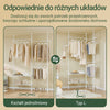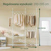 [STABILNY I ELASTYCZNY] Solidna metalowa rama utrzymuje do 65 kg i pełni funkcję niezawodnego wieszaka. Regulowana szerokość (147–195 cm) i wysokość (200–295 cm) pozwalają łatwo dopasować szafę do różnych przestrzeni.