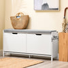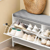 [Komfortowa powierzchnia do siedzenia z szarą poduszką] – szara tapicerka siedziska zapewnia wygodne siedzenie, które sprawia, że przebieranie butów jest przyjemniejsze. Ławka do siedzenia z miejscem do przechowywania jest nie tylko funkcjonalna, ale zapewnia również przytulną możliwość wykorzystania korytarza lub salonu.