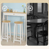 [Informacje o produkcie] Zestaw stół barowy z hokerami obejmuje 1 stół barowy (95 x 40 x 107 cm) oraz 2 okrągłe hokery (Ø33 cm, wys. 74 cm). Wykonany z trwałego drewna kauczukowego i płyty MDF, stół wytrzymuje do 50 kg, a każdy hoker do 90 kg.